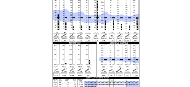 En hårmineralanalys kan verkligen ge ovärderlig information om kroppens funktionalitet och hjälpa till att förklara upplevda hälsoproblem och symtom. Det är inte enkelt att tolka en hårmineralanalys och jag rekommenderar att alla gör detta tillsammans med någon som kan detta. Inom Näringsbalansering utgår man från dessa analyser när ens specifika program utformas – inklusive livsstil, diet, kosttillskott och avgiftning. Detta program följer man sedan fram till nästa analys, som oftast görs efter fem månader. Min femte och senaste analys, se bild nedan, visar att jag fortfarande befinner mig i långsam oxidation, har allmänt låga mineralnivåer, en hög Ca/Mg-ratio och Ca/K-ratio samt fortfarande höga halter av Koppar.